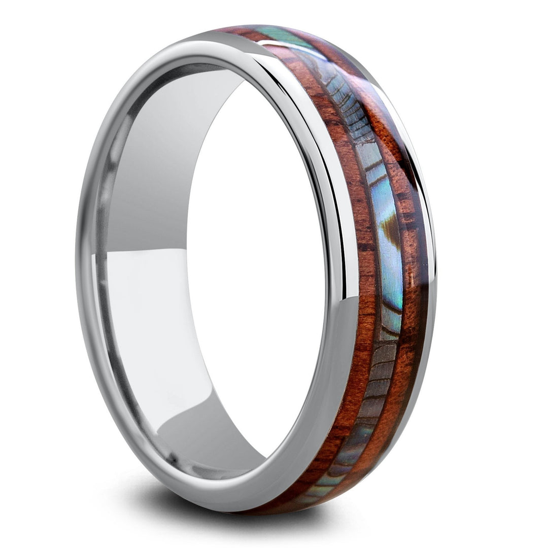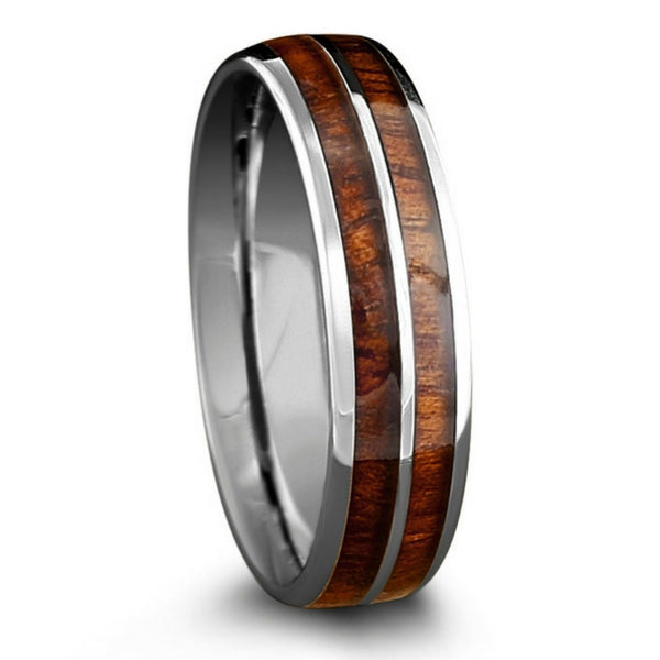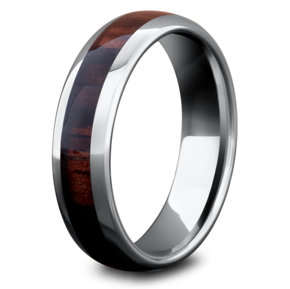 Koa wood only grows on a few areas in the world, Hawaii being one of them. Koa wood is one of the most beautiful hardwoods on the plant. The way the light reflects off of the wood is stunning. Our koa wood rings are made out of titanium, tungsten, and ceramic.