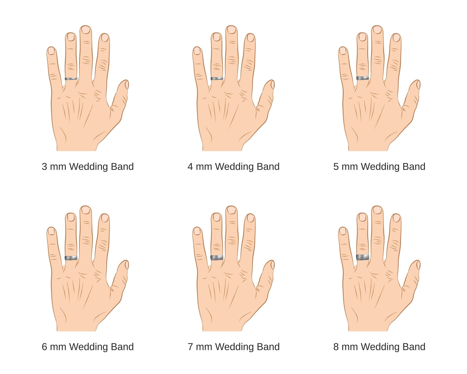 The most popular ring width for men would be an 8mm width ring. Ring width is 100% preference and there is no right or wrong.