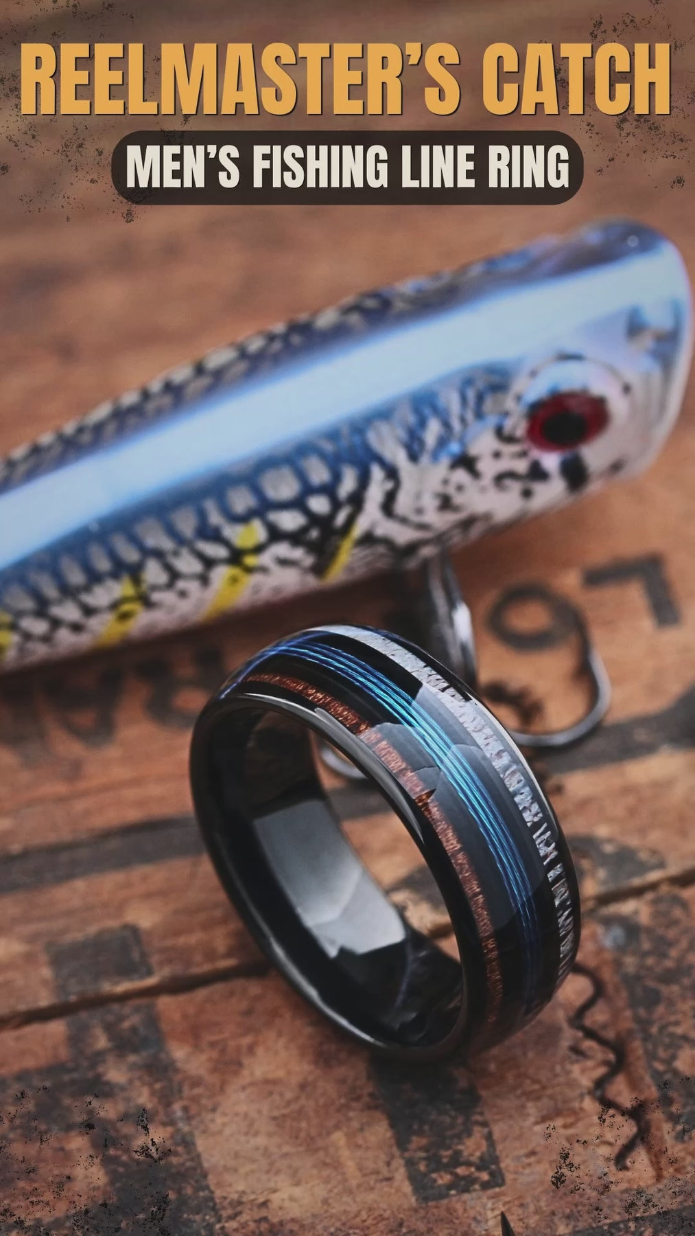 Introducing the "Reelmaster's Catch" men's wedding band, the ultimate symbol of a fisherman's commitment... both to his partner and to landing the big one! Crafted with a blend of wood, fishing line, and antler, this ring boasts a design that's "off the hook." The wooden inlay brings a touch of rustic charm, while the fishing line adds a modern twist that says, "I'm hooked on you, baby!" And let's not forget the antler, because nothing says "I'm a real catch" like incorporating a bit of wild flair. So, reel in your love and show off your angling prowess with the Reelmaster's Catch.